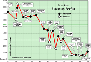 - Participants should make every reasonable effort to travel by horseback over as much of the trail as possible before the day of the event. Particular attention should be given to those sections which you expect to ride in the dark, when the mental and physical energy of you and your horse may be lagging. As much as a fourth of the trail may be traveled at night and each rider may wish to carry small items of necessity as a result. Since temperatures during event day can range from about 40F to 120F (5C to 50C), participants should be fully prepared for both extremes. Mountain weather conditions can change rapidly and unpredictably. Although rain is unlikely it is not impossible. Accordingly, be sure to have adequate clothing at all times and keep you and your mount well-nourished and hydrated at all times.